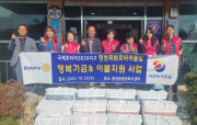 국제로타리 3630지구 목화로타리클럽(회장 김경미)은 지난 25일 중앙동 행정복지센터에 지역의 어려운 이웃들에게 전달해 달라며 이불매트 20채와 성금 20만원을 전달했다.