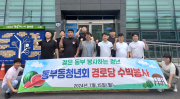 영천시 동부동청년회(회장 김용찬)는 15일 초복을 맞아 동부동 관내 경로당 39개소를 방문해 어르신들의 안부를 살피고 건강한 여름나기를 기원하며 수박을 전달했다.