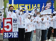 최기문 영천시장 후보는 22일 5일장이 열린 영천공설시장 입구와 중앙약국 앞 네거리에서 ‘필승유세’를 이어갔다.