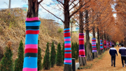 영천시는 언하공단 완충녹지를 활용해 2021년 조성된 우로지 자연숲 메타세쿼이아 산책길에 색동 니트 옷을 입은 나무들이 주민들의 눈길을 끌고 있다.