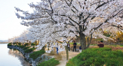 영천시에는 벚꽃이 만개해 지난 5일부터 망정 우로지생태공원을 핑크색으로 물들이고 있다. 인근에 비해 한 주 늦은 벚꽃은 오는 주말 만개한 모습을 보일 예정이다.