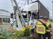 (지역 단독) 영천 금호읍 4번 국도서 4.5톤 트럭 전신주 충돌
